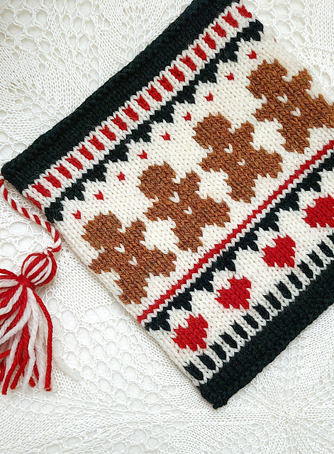 This is the Gingerbread Love Potholder, also from the Drops Christmas Calendar. Knit in worsted weight yarn, it goes rather quickly. I used wool because I am not going to actually use it for food!! This same pattern is available in socks, mitts, a sweater and would easily translate into a hat, headband, or cowl.