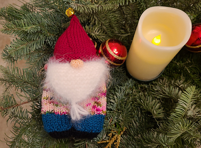 This is a little Christmas gnome. It is Day One of the annual Drops Christmas Calendar. Drops “drops” a new free pattern every day throughout December. I have followed them for the past few years. All past years can be found on Ravelry.